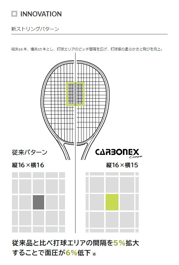 ・90inch2でありながらストリングパターンが16×15であること。