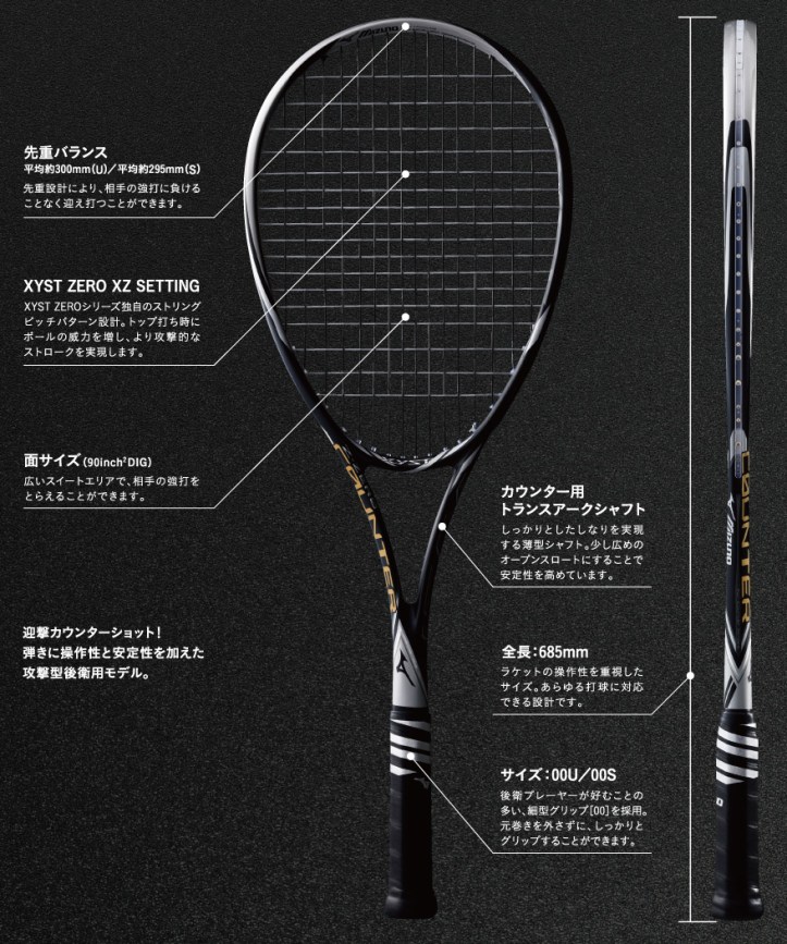 カタログ掲載もあり、情報が分かりやすい!横糸の間隔見ても、スイートスポット位置がかなりグリップ寄りかな、と想像できますね。短剣?ドス?(ミズノ 関係者さん、色々言ってごめんなさい。カッコイイんだけど。。。)